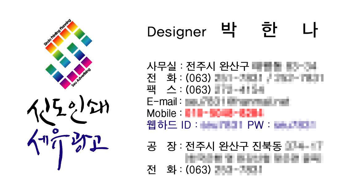 작살님께서 올려주신 캘리로 작업한.. 온새미로 일반 1 8351 2009.12.16 11:08 작살님께서 올려주신 캘리로 작업한.. 저희 명함입니다. 이사하고 일하느라 명함밖에 작업을 못해서 이제야 올려드립니다. 다른것도 만약에 작업한다면 올릴께요 감사합니다. ^^
